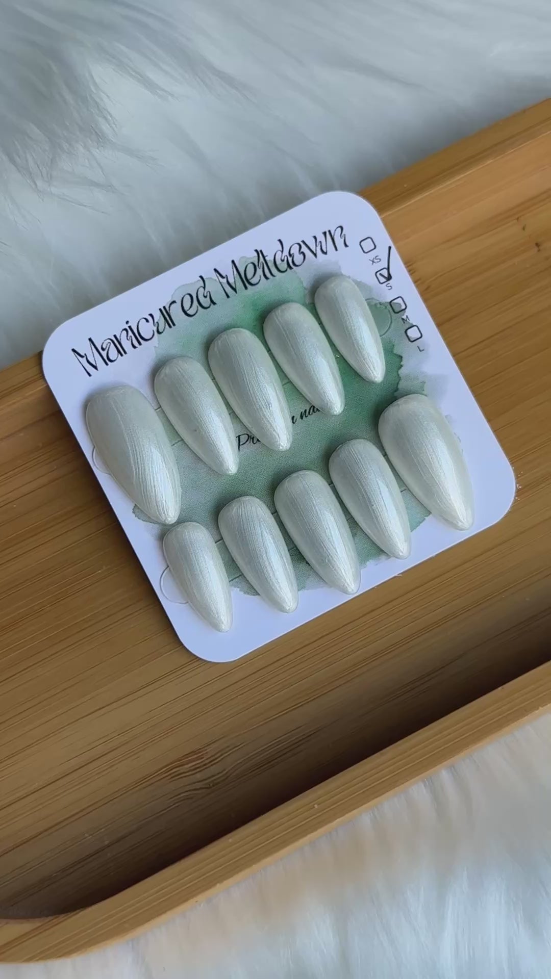 Bring effortless elegance to your manicure with the Pearl Glow set. These nails feature a soft, luminous white finish with a subtle satin sheen that shifts beautifully in the light, giving your look an airy, ethereal glow.
